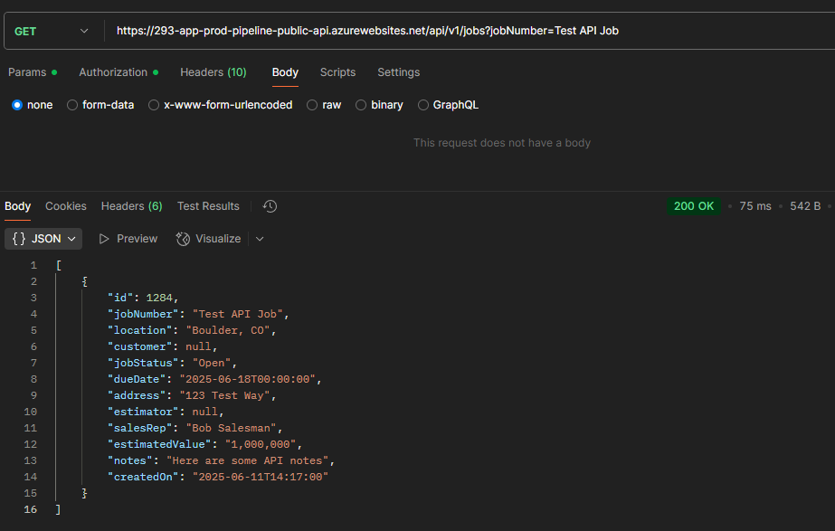We can view the Job’s details by calling the Jobs endpoint and filtering by