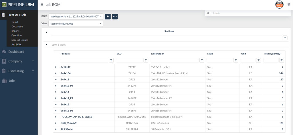 The Pipeline LBM Public API gives programmatic access to job information, allows adding quantities to jobs, and allows retrieval of generated job BOMs.